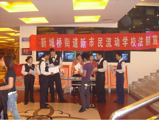 2、工会新市民流动学校在音乐龙辅导新市民学习新法规。